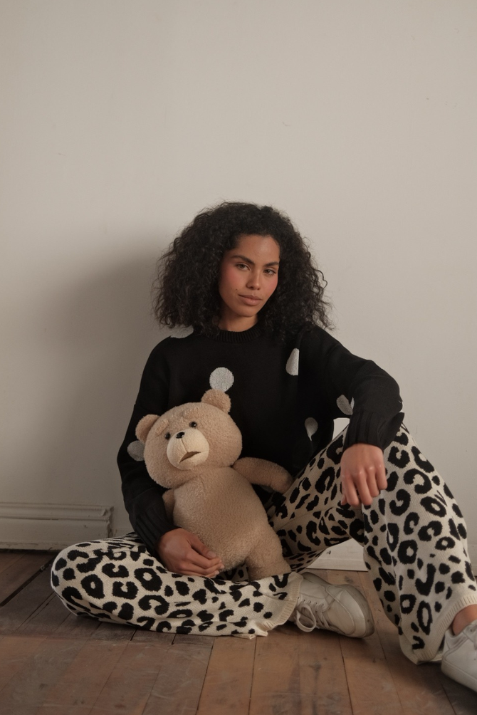 CONJUNTO TEJIDO CAMISETA LEOPARDO CAFE