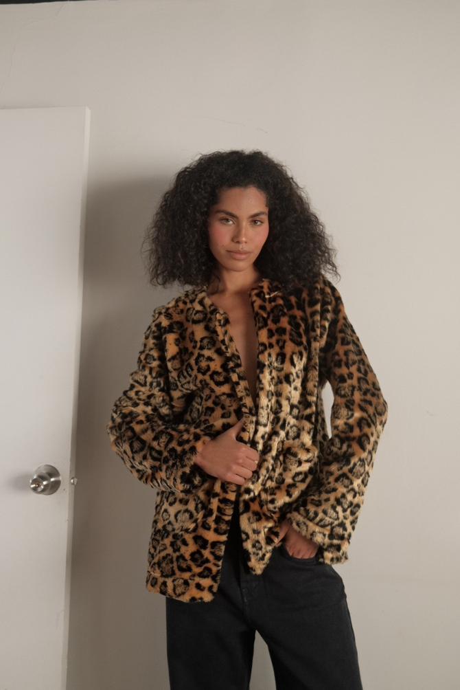 SACO NEGRO CUELLO LEOPARDO