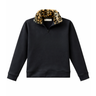 un saco negro con cuello de cheetah? la perfecta combinación. si, la manga es intencionalmente no tan larga. Este saco tiene cremallera en el cuello.