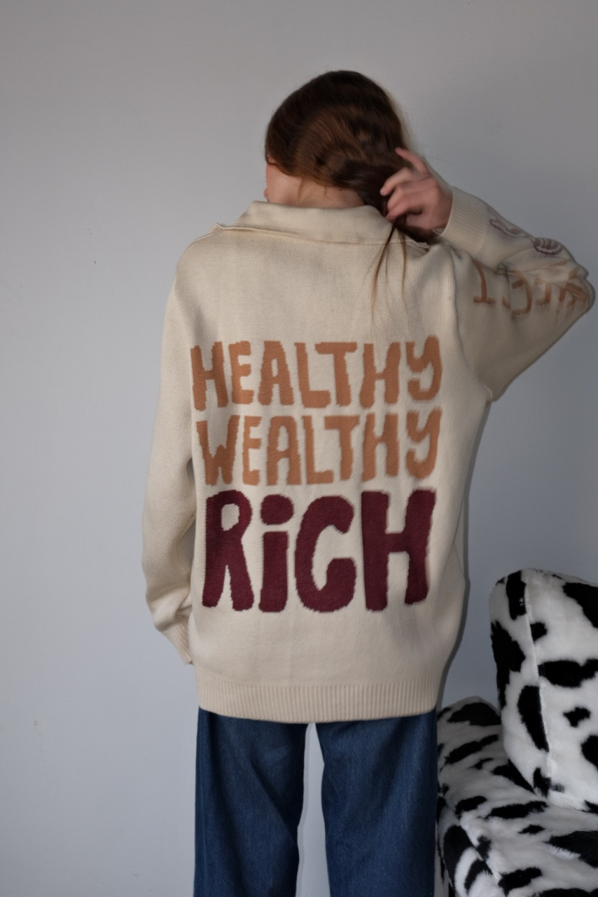nuestra manifestacion para el 2026: healthy, wealthy and rich. este saco que nos ayuda a manifestar todo lo que queremos fue diseñado por @ginainabottle__ y creado por nosotros. no hay un mejor regalo de navidad, es en serio.