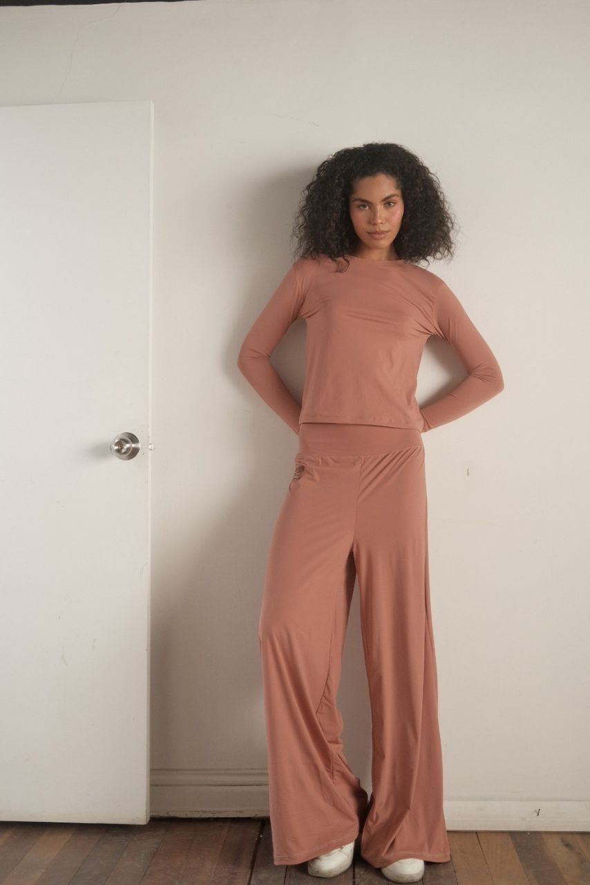 un set perfecto para todo. 2 piezas para hacer mas de 3 outfits. una camiseta para hacer layering (obvioo) y un pantalon tan comodo con la pretina del momento (no tiene caucho)