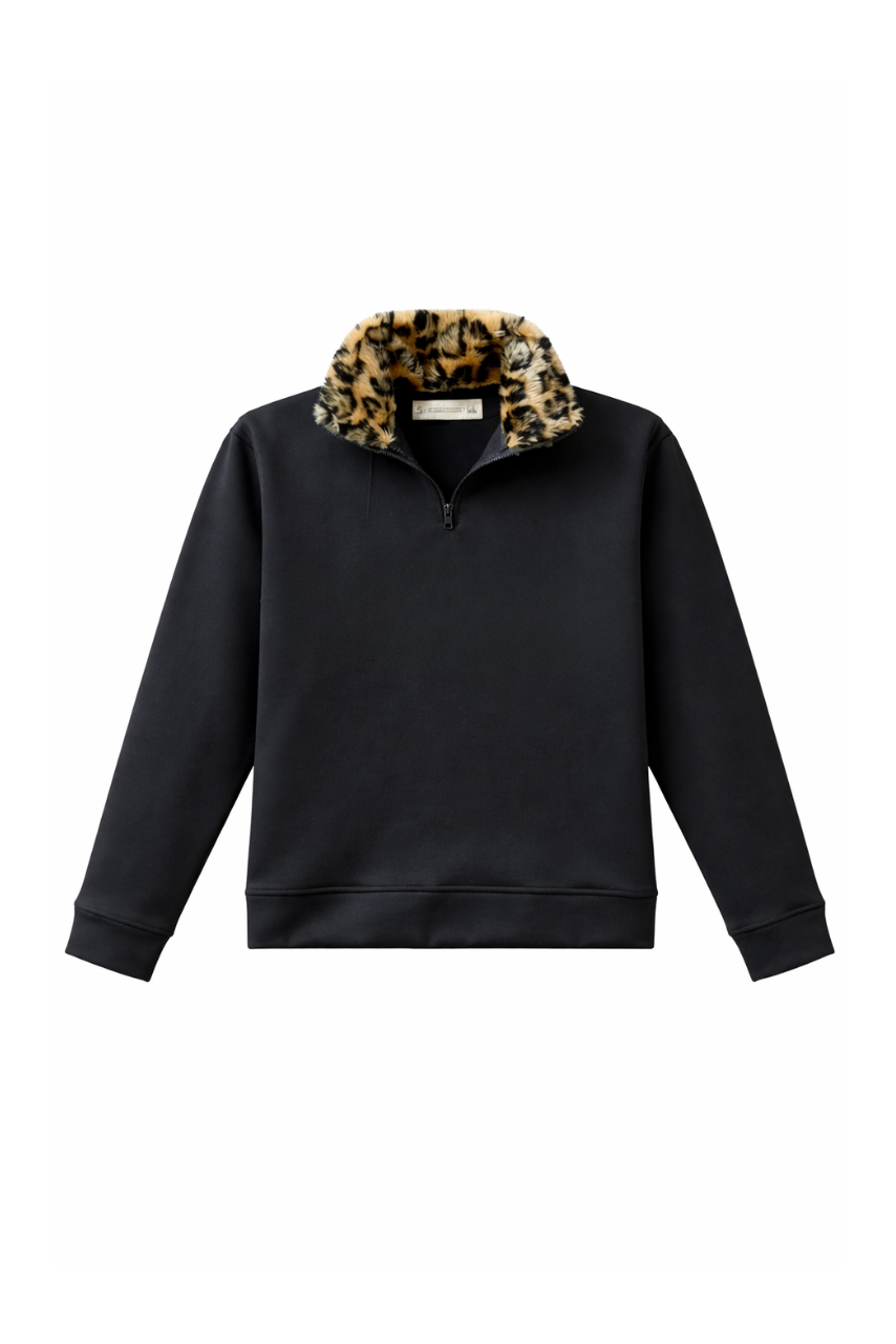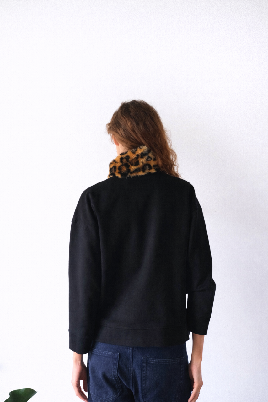 SACO NEGRO CUELLO LEOPARDO